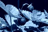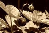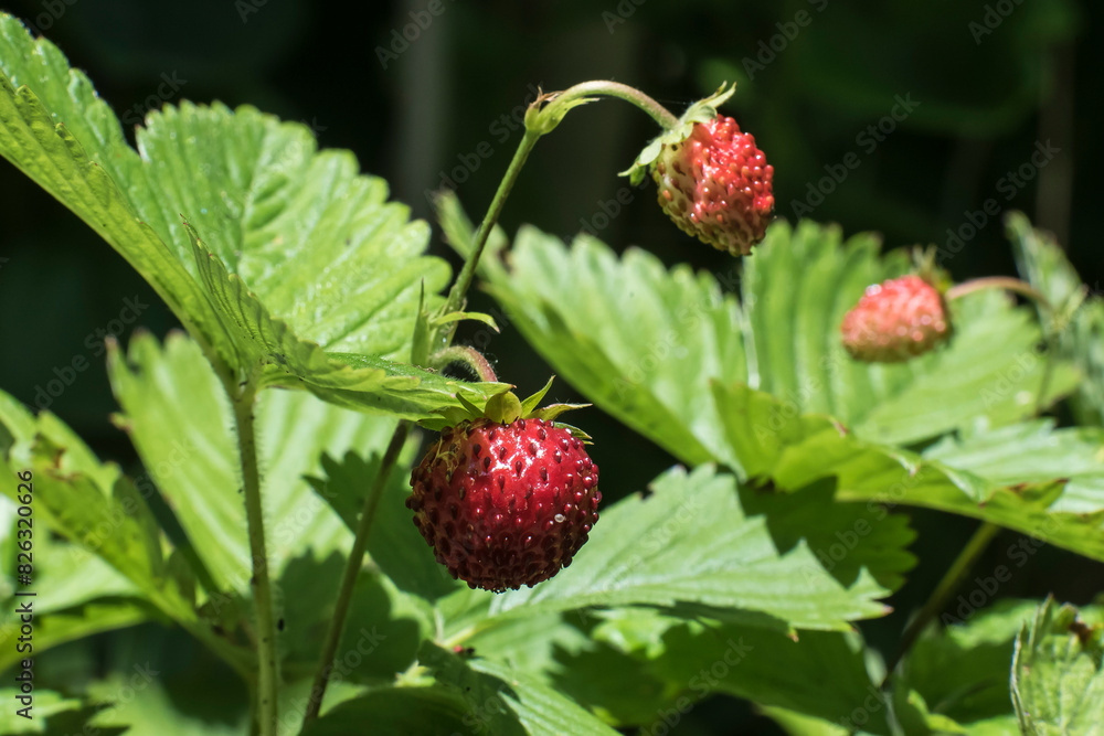 ripe wild strawberries on bushes in the garden