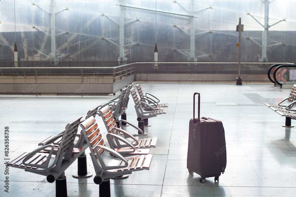 lost luggage in the airport, suitcase baggage without owner in modern airport