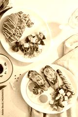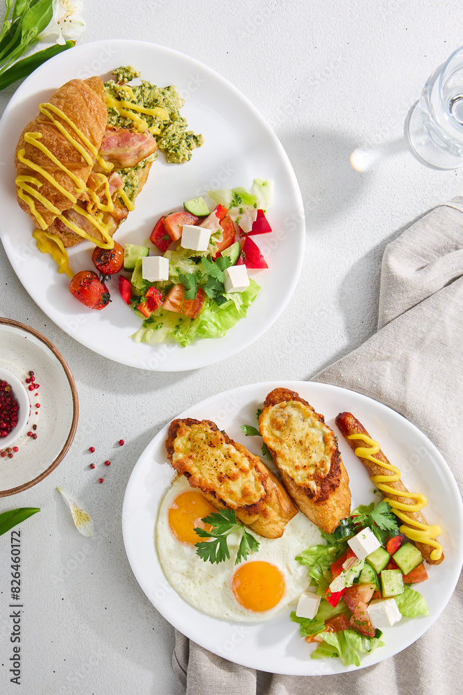 Delicious Breakfast Spread with Croissant and Fried Eggs on Elegant Table Setting