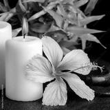 beautiful spa concept of pink hibiscus flower, twig bamboo and t