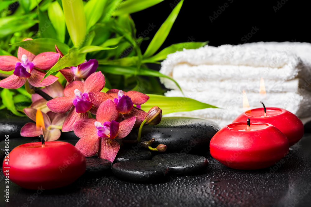 spa concept of blooming twig red orchid flower, phalaenopsis, ba