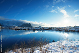 snow in Reine Village, Lofoten Islands, Norway