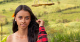 lifestyle: portrait of beautiful brown-skinned latina with huge brown eyes enjoying nature