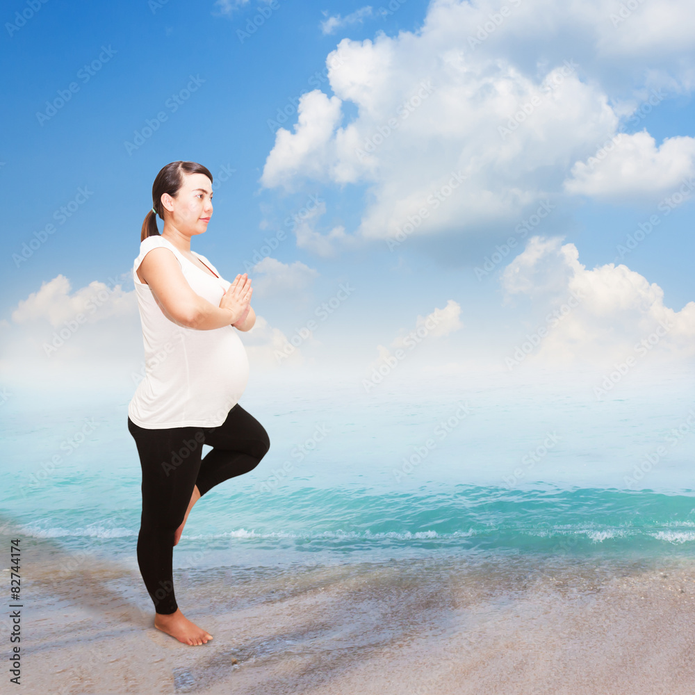 Pregnant yoga on the beach