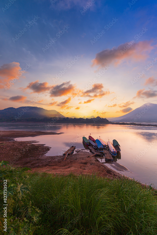 Mekong river and mountain scenery in the morning,Kaeng Khut couple scenery, Chiang Khan, Thailand