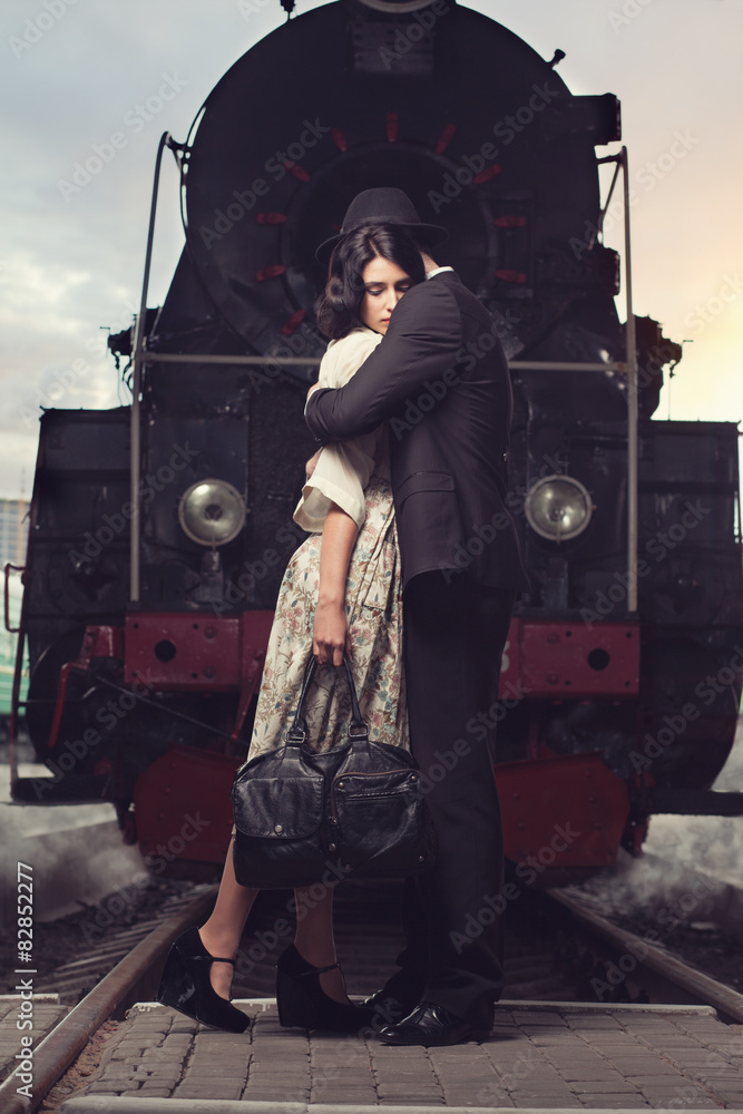 parting of lovely couple on railway station