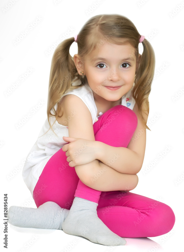Pretty little girl sitting.Isolated.