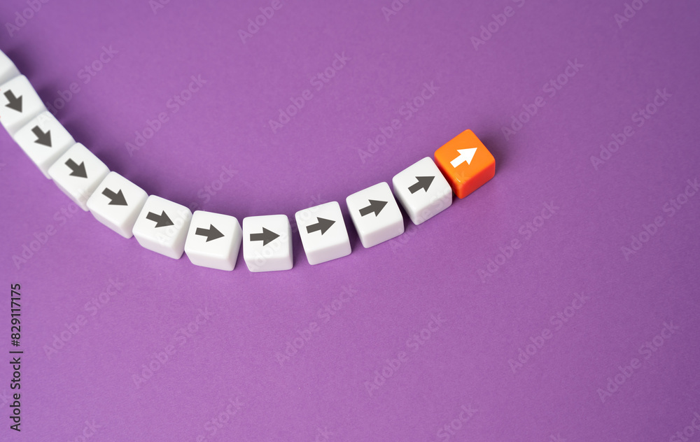 The movement of the arrows follows the leading one. Inspire others by your example. Bring your business to growth. Stop falling. Overcome difficulties and achieve positive growth.