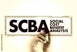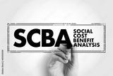 SCBA Social Cost Benefit Analysis - technique used for determining the value of money, specifically public investments, acronym text concept stamp