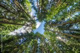 Observing the sunlight filtering through the trees in a lush forest