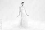Asian young beautiful female portrait attractive model gorgeous charming bride wearing fashion wedding dress luxury perfect style, posing standing smile looking camera isolated white background studio