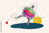 Composite photo collage of astonished old man wear swimwear lifebuoy summer vacation sunny resort travel isolated on painted background