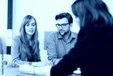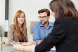 beraterin erklärt einem paar etwas in den unterlagen
