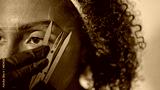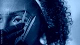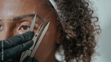 Closeup hands marking brows for permanent makeup. African american visit salon