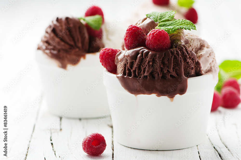 Ice cream with berry and mint