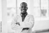 Confident Male Doctor Posing in White Coat in Modern Hospital