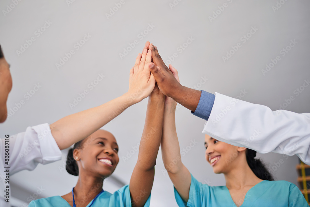 Diverse Medical Team Doing High-Five in Hospital Setting