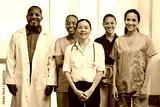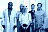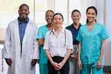 Diverse Medical Team Standing Together in Hospital, Smiling