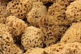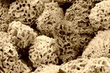 A close-up of a sea sponge intended for washing, filling the entire frame.