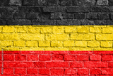 Germany flag on wall. Brick surface. Political symbol in Germany. Wall in colors of national flag Germany. Patriotic symbol on fence in Berlin. German political logo. Background, backdrop. 3d image
