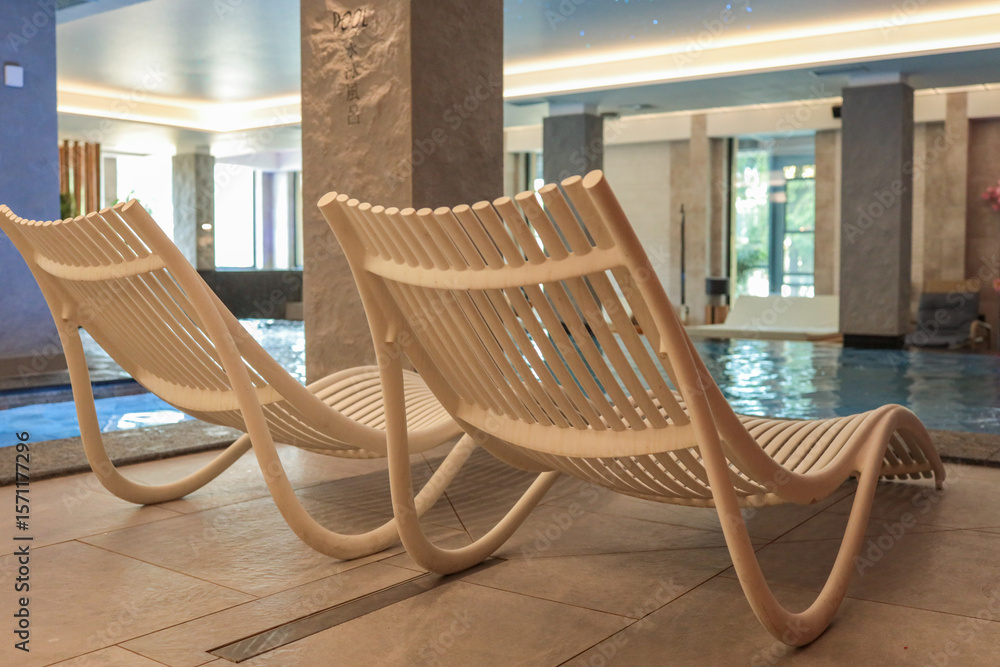 Zen basalt stone and tropical paradise flowers on white marble background.
