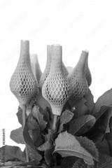 Bouquet pink rose in foam net cover. The buds of pink roses are covered with a net to keep them from opening