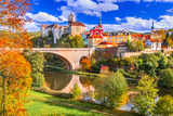 Loket, Czech Republic. Charming town, Ohre River in the near of Karlovy Vary, Bohemia, autumn colors.
