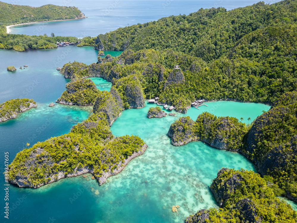 Raja Ampat, Indonesia: Aerial view of the Piaynemo viewpoint famous for its limestone karst landscape in Raja Ampat archipelago in West Papua in Indonesia.