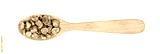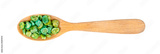 Green peas roasted in wooden spoon isolated