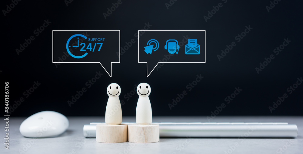 Contact us banner concept. Customer work page support, business web technology icon service such as email, address, live chat message and call phone, company website info network and 24 hours service