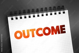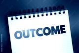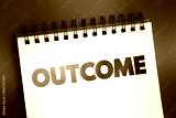 Outcome - something that follows as a result or consequence, text on notepad concept background