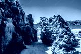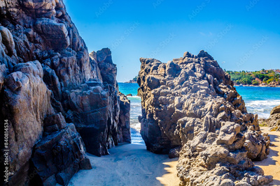 Rocks on the shore of the beach on a sunny day in Puerto Escondido Oaxaca