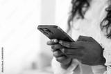 Closeup of hands using phone. Unrecognisable black person using phone with copy space