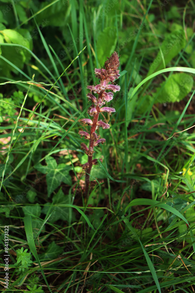 Common red Broomrape in the meadow. Orobanche minor on springtime in Italy