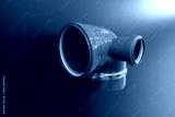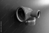 Gray plastic fitting, which is a component of the plumbing system. It is designed to connect the pipes together, allowing you to control the flux of liquids.