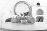 Desk of free space and kitchen interior with empty space for your ice creams