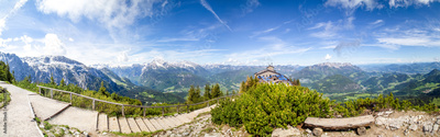 Blick vom Gipfel über das Kehlsteinhaus, Obersalzberg, Mannlsteig, Berchtesgaden, Deutschland