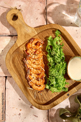Grilled Shrimp Skewers with Fresh Salad Mix in Sunlit Still Life Setting