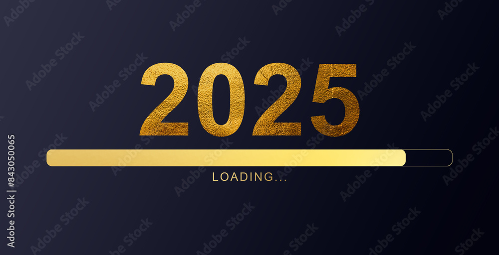 Loading new year 2025. Greeting card bright sparkles. Colorful dust loading bar Happy New Year 2025, Sparks glitter special light effect, Illustration