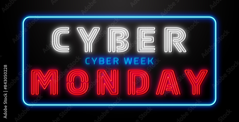 Cyber monday sale neon sign vector. Cyber monday design template neon sign