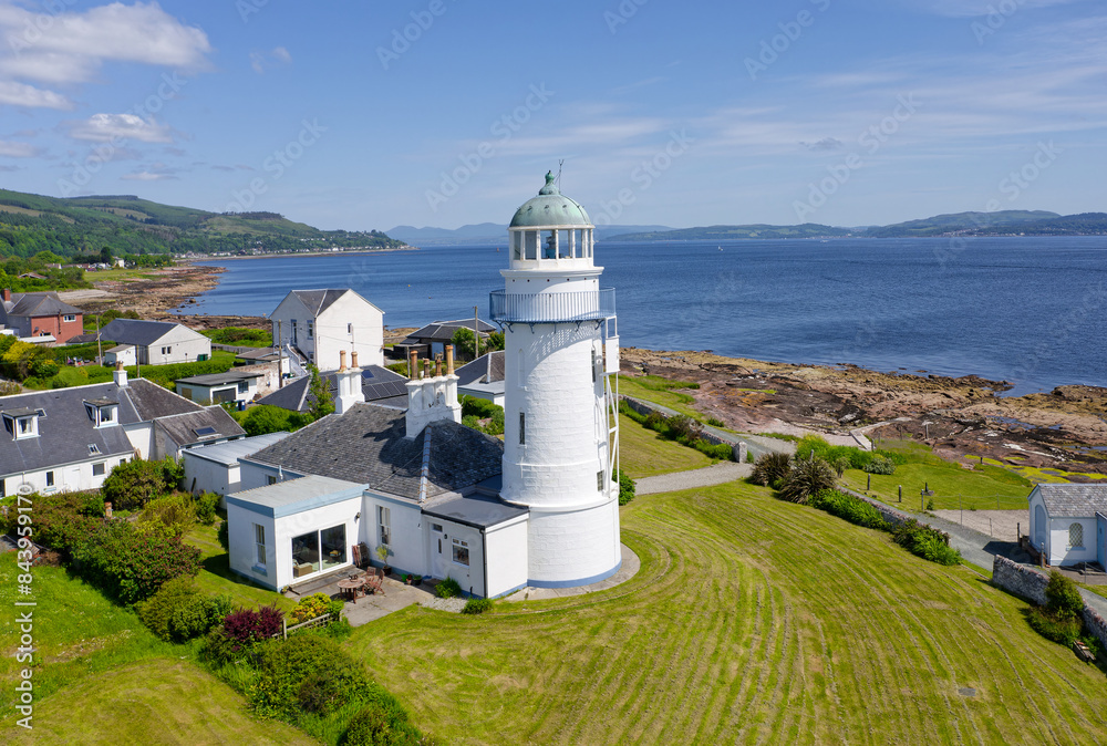 Aerial view of Toward Point Lighthouse near Dunoon in Argyll and Bute