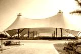 White tent with pens for cattle