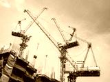 Cranes work in construction site