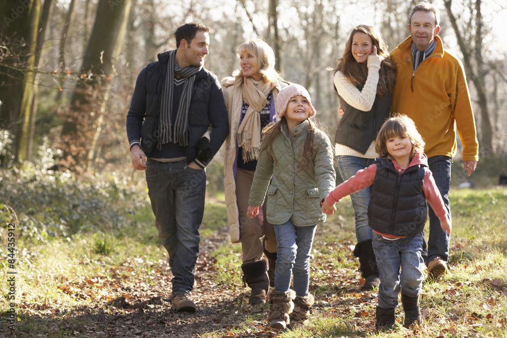 3 Generation family on country walk in winter