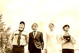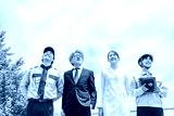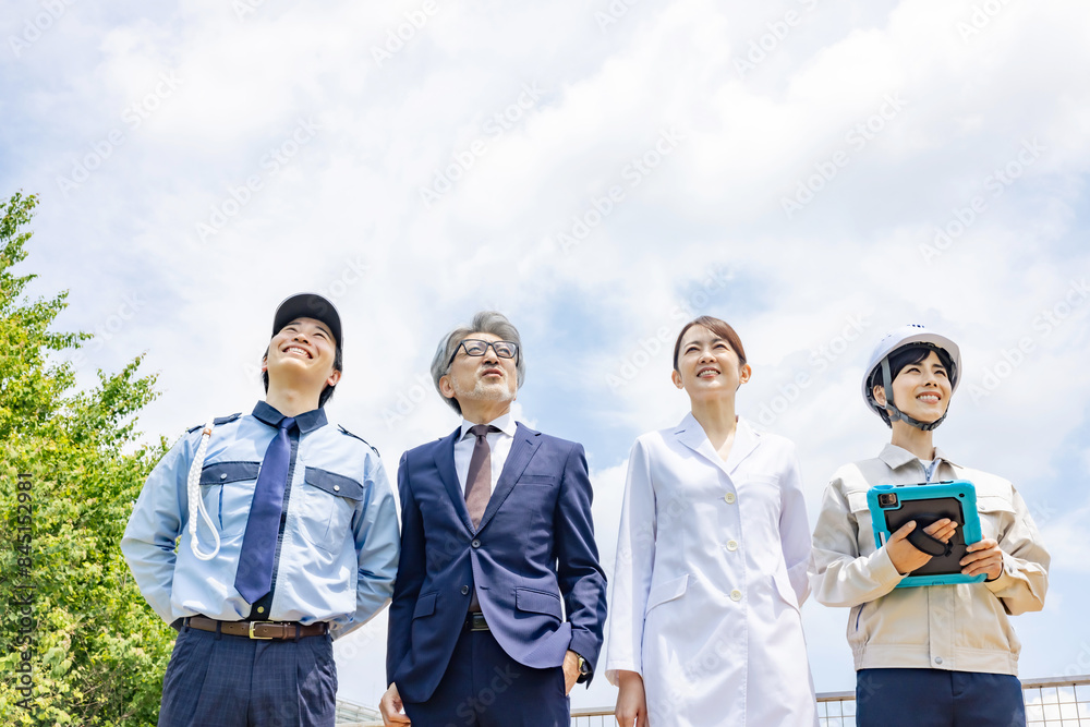 空を見上げる様々な職業の人々(ビジネスマン・エンジニア・研究者・警備員)