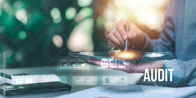 Auditor worker working with document folder ,Management of important document storage of organization ,ERP document system ,quality assessment management With a checklist ,online document database