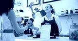 Service, barista or customer with coffee shop or store for drinks or return at checkout counter in a cafe job. Reusable bottle, giving or waitress in small business restaurant with a woman or lady