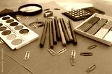 Stationery objects. School and office supplies