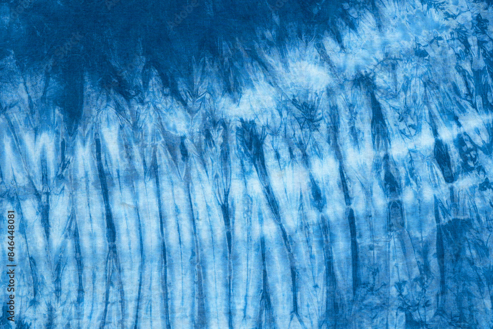 Pattern of blue tie batik dye on cotton cloth, Dyed indigo fabric background and textured