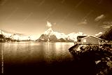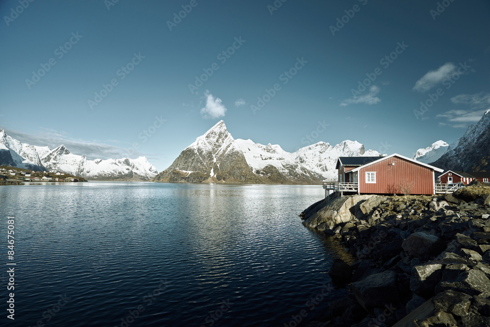 Fishing hut at spring day - Reine, Lofoten islands, Norway